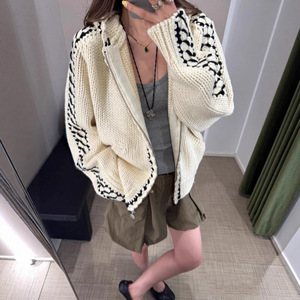 2025秋冬新款openyy设计粗针手工钩花拼接连帽羊毛毛衣针织外套女
