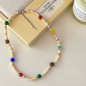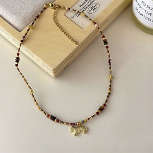 2025夏季新款多巴胺天然石贝壳串珠小马吊坠项链气质时尚百搭项链