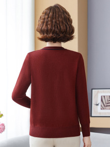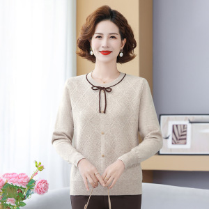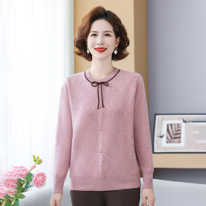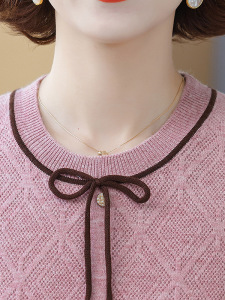 妈妈装2025新款秋季圆领套头洋气薄针织衫上衣蝴蝶结领提花针织衫