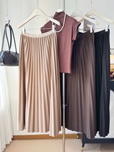 垂感百褶裙女早秋2025高腰中长款A字显瘦百搭气质压褶半身裙