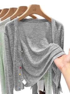 v领针织宽松防晒开衫配吊带裙轻薄冰丝空调衫女夏披肩女外搭旗袍
