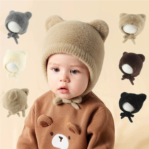 新款秋冬卡通儿童猫耳朵毛绒护耳帽可爱小尾巴保暖帽男女宝宝防寒