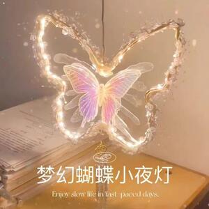 粉色梦幻蝴蝶架小夜灯风铃2套