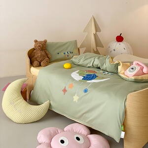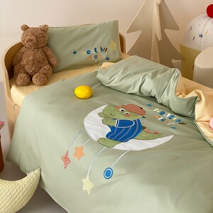 卡通小恐龙A类100支澳棉纯棉幼儿园床套款三件套儿童棉花被六件套