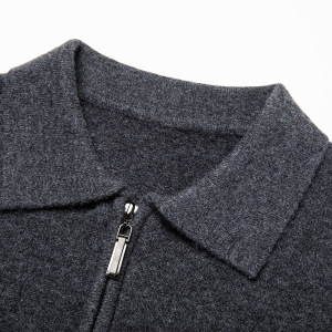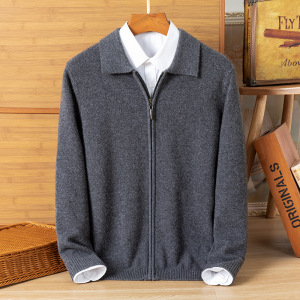 100%纯羊毛开衫秋冬男式针织开衫新款宽松外穿拉链翻领加厚外套男