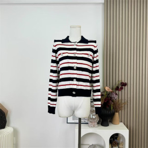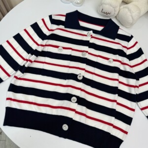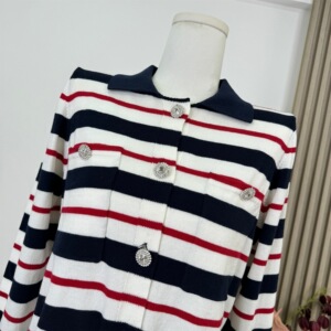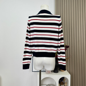 2025秋季新款 条纹针织开衫女韩系气质撞色翻领长袖polo上衣