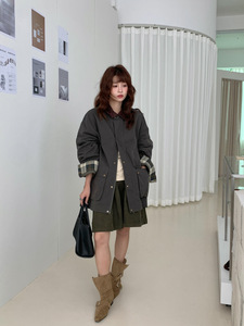 GAGD 晨雾风衣 英伦气质巴恩风拼格纹通勤休闲中长夹克外套25秋季