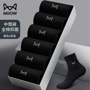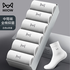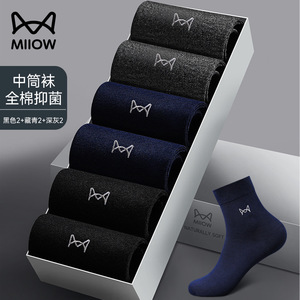 猫人袜子男秋冬季中筒棉袜防臭抗菌男士商务纯棉透气吸汗灰色长袜