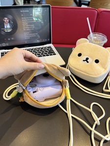 日系ins可爱轻松小熊斜挎包 化妆包杂物收纳包大容量便携拍立得包