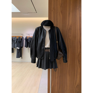 25秋超软环保哑光皮松紧窄下摆显瘦宽松短款廓形皮衣休闲圆领夹克