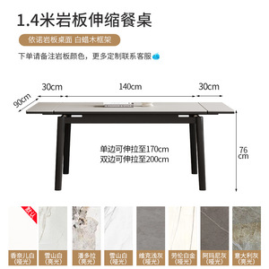1.4米伸缩2米岩板餐桌【加厚12MM依诺岩板+白蜡木框架】