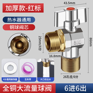 大流量球芯三角阀全铜冷热水燃气热水器专用球阀三角阀开关4分6分