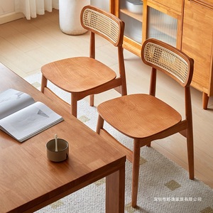 全实木餐椅樱桃木色餐厅椅子靠背书桌椅现代简约整装椅子民宿餐厅