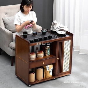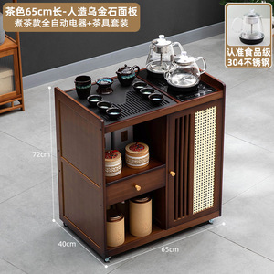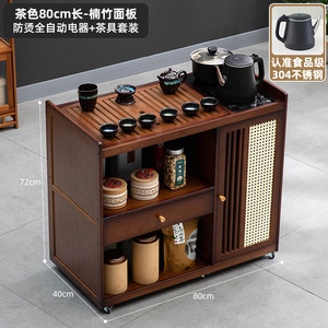 移动茶桌小茶台烧水壶一体家用茶水柜实木茶几茶车阳台煮泡茶桌子