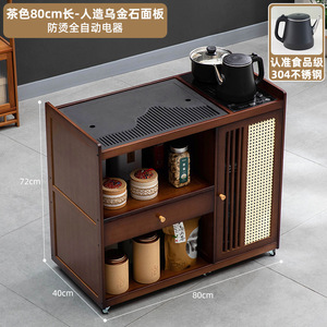 【乌金石面板】茶色-80长单抽单门+防烫全自动电器+茶具套装