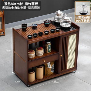 茶色-80长单抽单门+煮茶款全自动电器+茶具套装