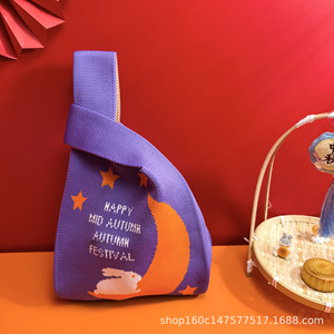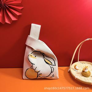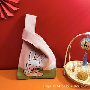 新款大容量国风中秋月兔月饼针织礼品袋手提包伴手礼袋公司礼品袋