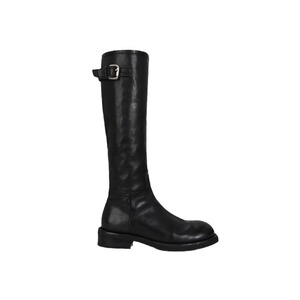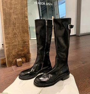 牛皮葡萄妈同款真皮复古褶皱高筒靴子显瘦粗跟英伦骑士靴女长筒靴