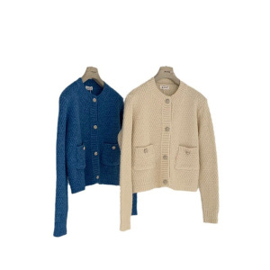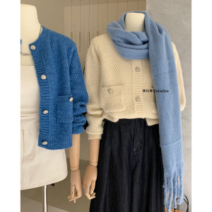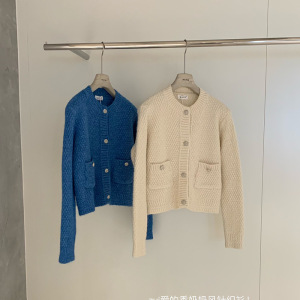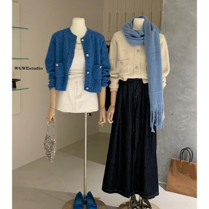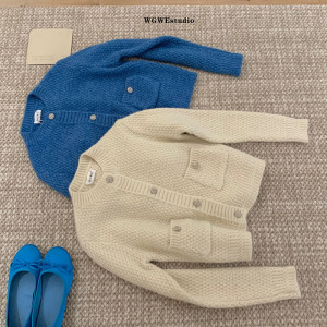 WGWE2545复古蓝一眼吸睛 颜色满分的厚实感毛衣针织开衫百搭