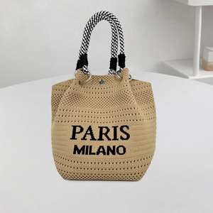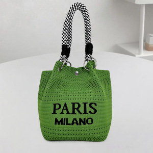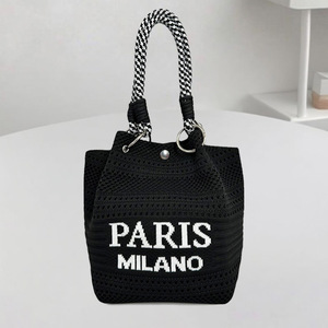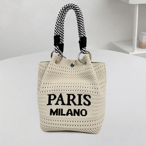 新款PARIS风小众设计针织手提包时尚白塔逛街拍照手拎包包水桶方