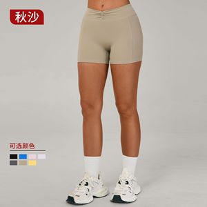 欧美锦纶紧身瑜伽短裤女跨境收腹健身裤提臀跑步运动短裤2234