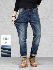 批发秋季新品深色水洗复古经典牛仔裤修身小直筒弹力长裤男