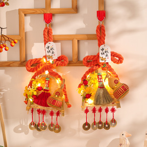 中秋节扫把簸箕门挂装饰入户门万字结五帝钱葫芦挂件氛围场景布置