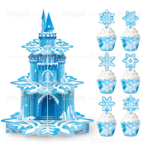冬季雪花主题派对纸质蛋糕架甜品台城堡三层蛋糕塔派对装饰用品