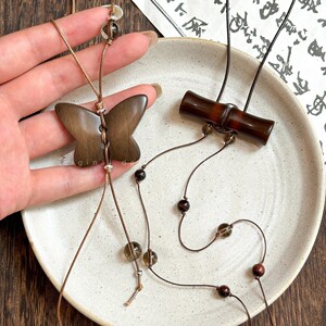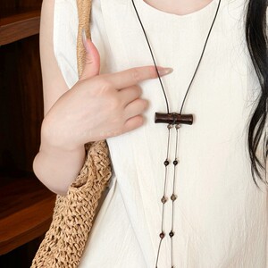 复古新中式木质长款项链女民族风小众挂脖毛衣链日常百搭国风配饰