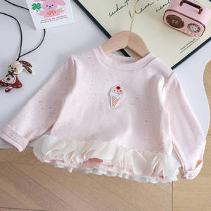 女童秋季装新款卫衣2025新款可爱宝宝冰淇淋贴布网纱下摆甜美上衣
