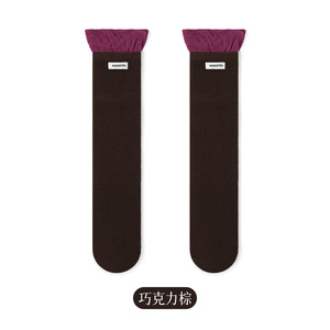 ZT1007女童袜子春秋新款儿童纯色精梳棉袜小腿袜可爱花边中筒袜