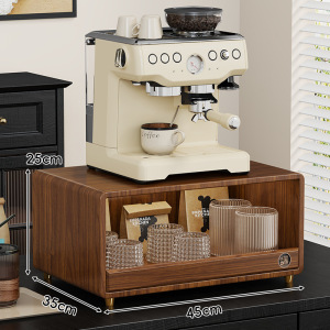 实木咖啡机增高架水杯茶具咖啡角布置展示架桌面抽屉收纳置物架子