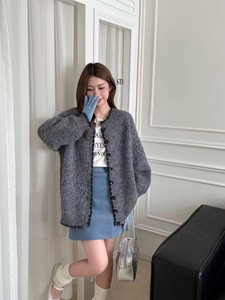 濮院羊毛衫开衫外套大衣小香风老钱风高品质中长款毛衣韩版秋女装