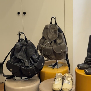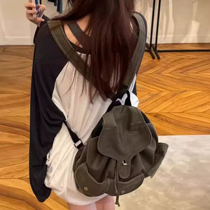 2025新款软皮休闲百搭背包大容量通勤旅行书包双肩包女潮韩国小众