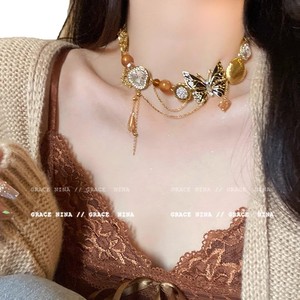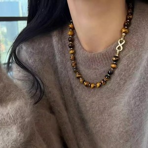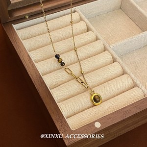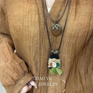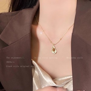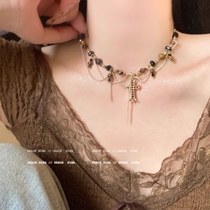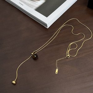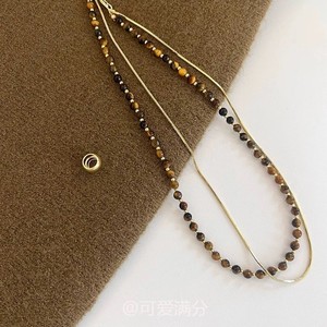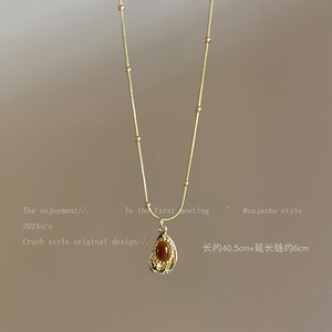 新款复古美拉德双层咖色串珠吊坠项链轻奢高级感毛衣链气质项饰品