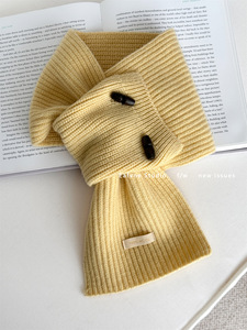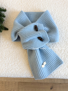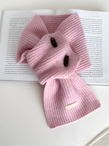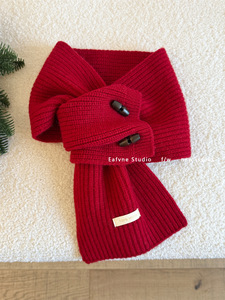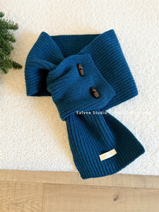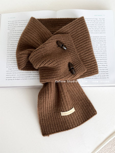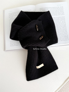 100%WOOL纯羊毛牛角扣围巾纯色小围脖交叉女士懒人保暖秋冬季领子