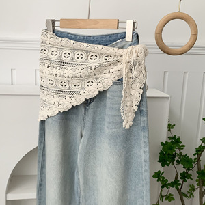 围巾新款纯色镂空蕾丝衣领花边外搭假领子薄披肩三角巾系腰屁帘