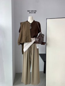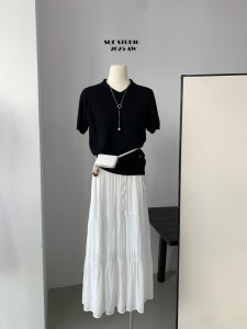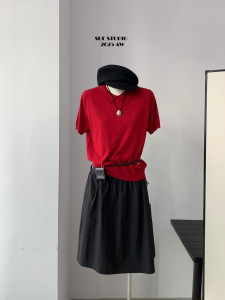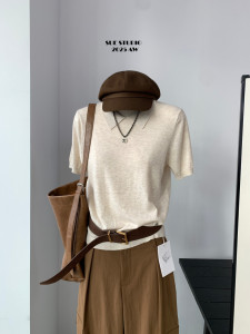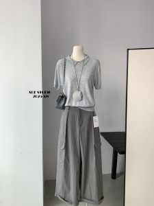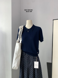 SUE十三行韩系极简风小标设计Polo领针织衫百搭短袖羊毛上衣37129