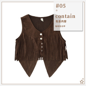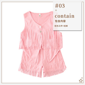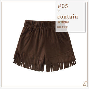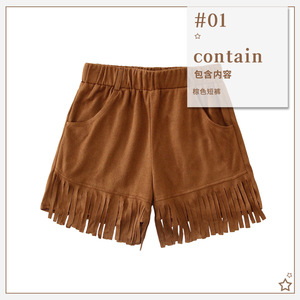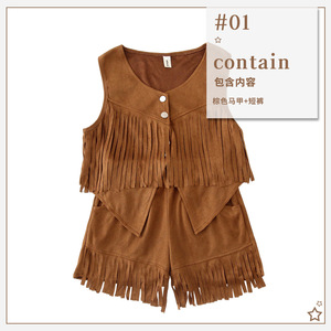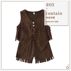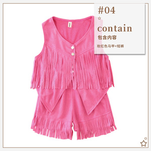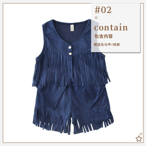 儿童狂欢节流苏马甲民族风复古鹿皮绒西部牛仔短裤女童嬉皮士演出