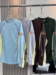 大厂订单秋情侣山系户外网眼透气舒是速干撞色骑行长袖T恤打底衫
