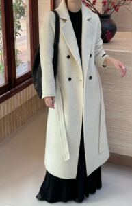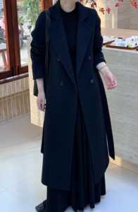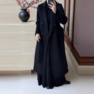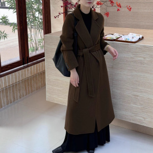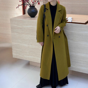 2025秋冬新款双面羊绒大衣女加长西装领系带双排扣宽松高级感外套