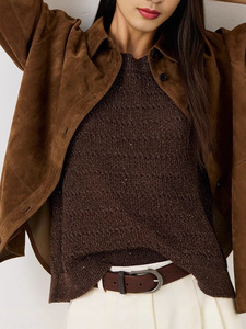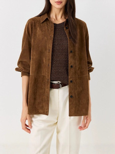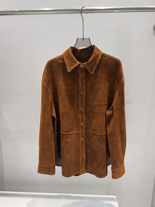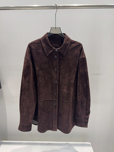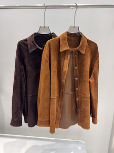 老钱风珠链真皮衬衫外套女山羊皮绒面中长款美拉德巴恩复古皮衣潮