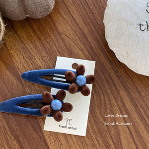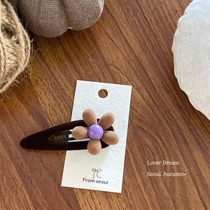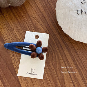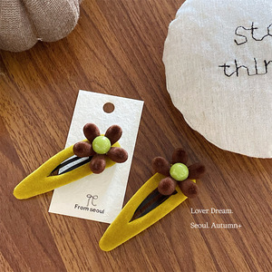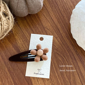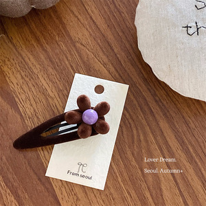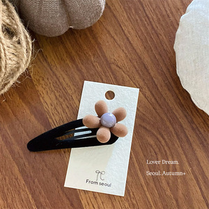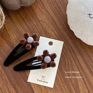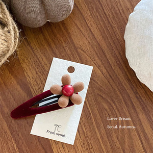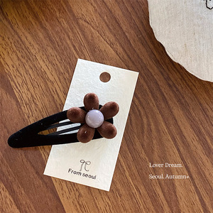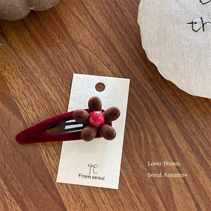 韩国秋冬新款美拉德植绒花朵bb夹发夹 法式时尚刘海夹侧边夹发饰