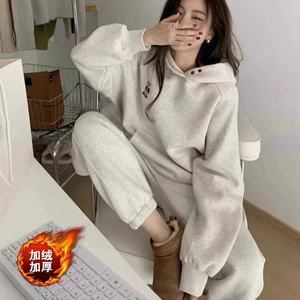 连帽卫衣运动套装女冬季保暖加绒加厚显瘦宽松韩版学生休闲两件套