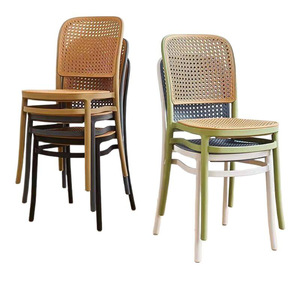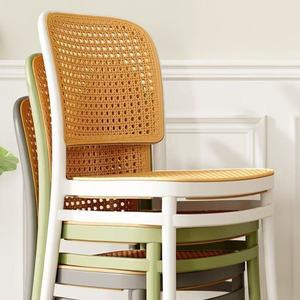 北欧塑料藤编椅子叠放靠背椅商用户外家用网红餐椅休闲桌椅小户型