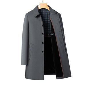 跨境男式风衣2025春秋中长款翻领加厚中青年轻奢商务休闲保暖外套