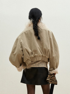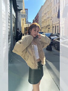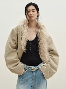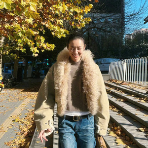 【现货 不退换】滩羊毛沙卡夹克外套卡其皮毛一体真毛皮草大衣女