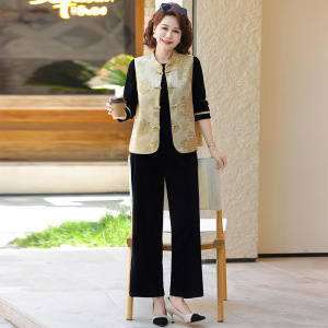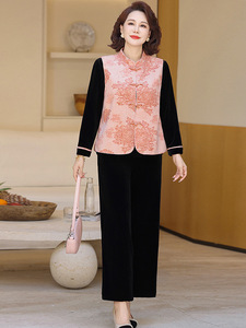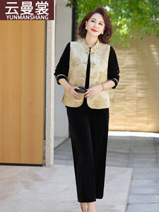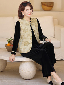 新中式妈妈秋装端庄大气套装2025新款中老年金丝绒国风马甲外套女