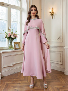 跨境中东优雅女士连衣裙 穆斯林钉珠优雅长袍abaya女装外贸批发