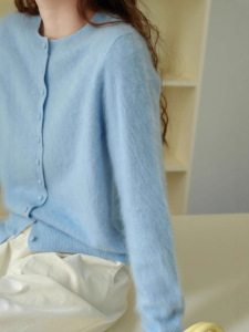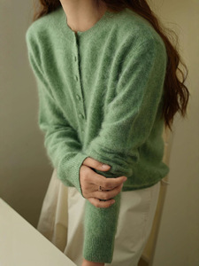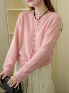 2025秋濮院羊毛羊绒拉毛圆领百搭毛衣开衫外套女打底老钱风女装